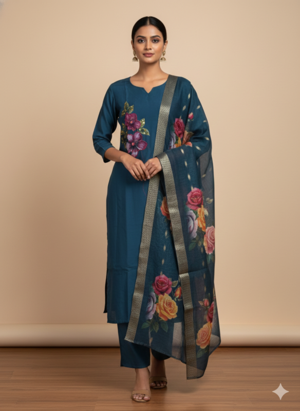 RUSSIAN SILK APPLIQUE KURTA SET