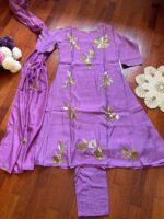 Bring home timeless elegance with this A-line embroidered Kurta set in Mal Chandari fabric. Designed in a soothing lavender shade with floral thread embroidery, this Kurta set is perfect for festive occasions, family gatherings, or elegant everyday styling.