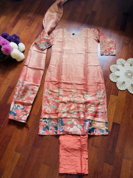 ✨ Shop the Peach Kantha Work Muslin Kurta Set online at Dupattastic and bring home a timeless addition to your ethnic wardrobe.